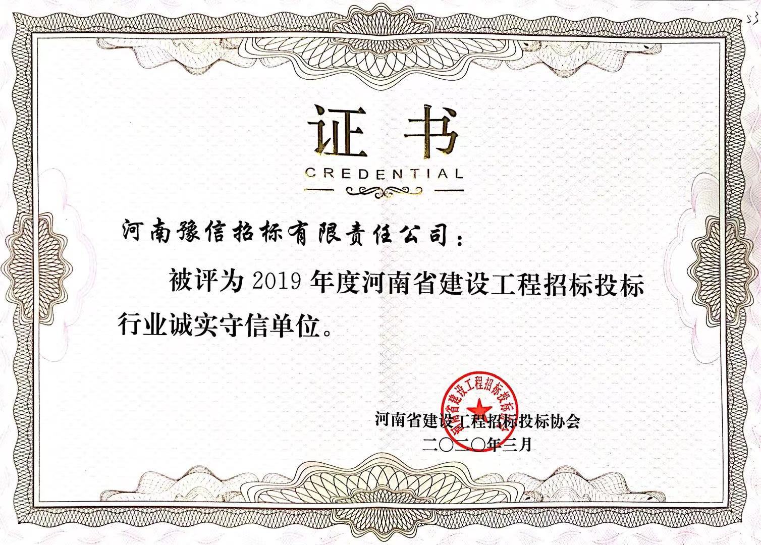 2017年度河南省建設(shè)工程招標代理誠實守信單位 -