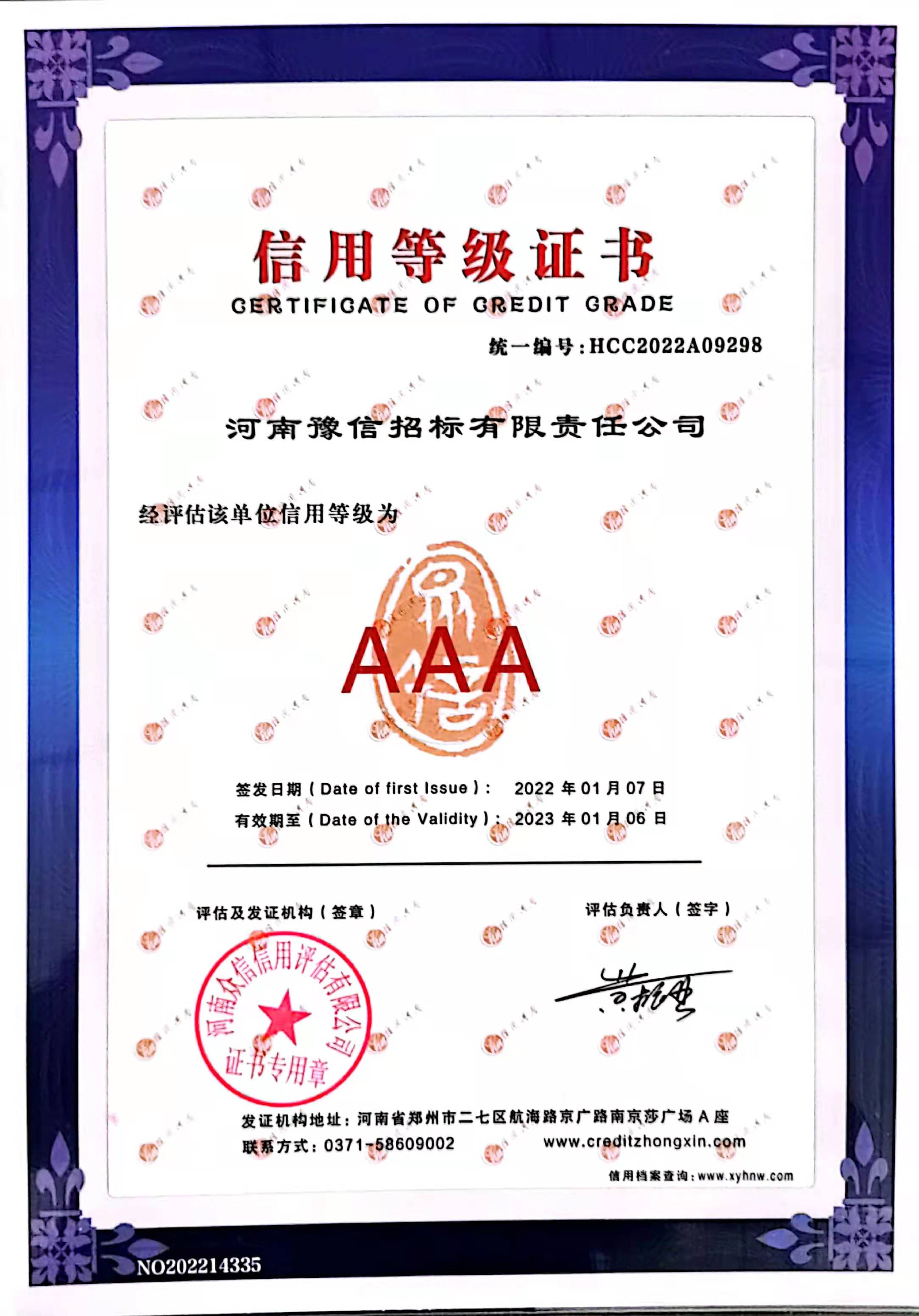 3A企業(yè)信用等級證書 -