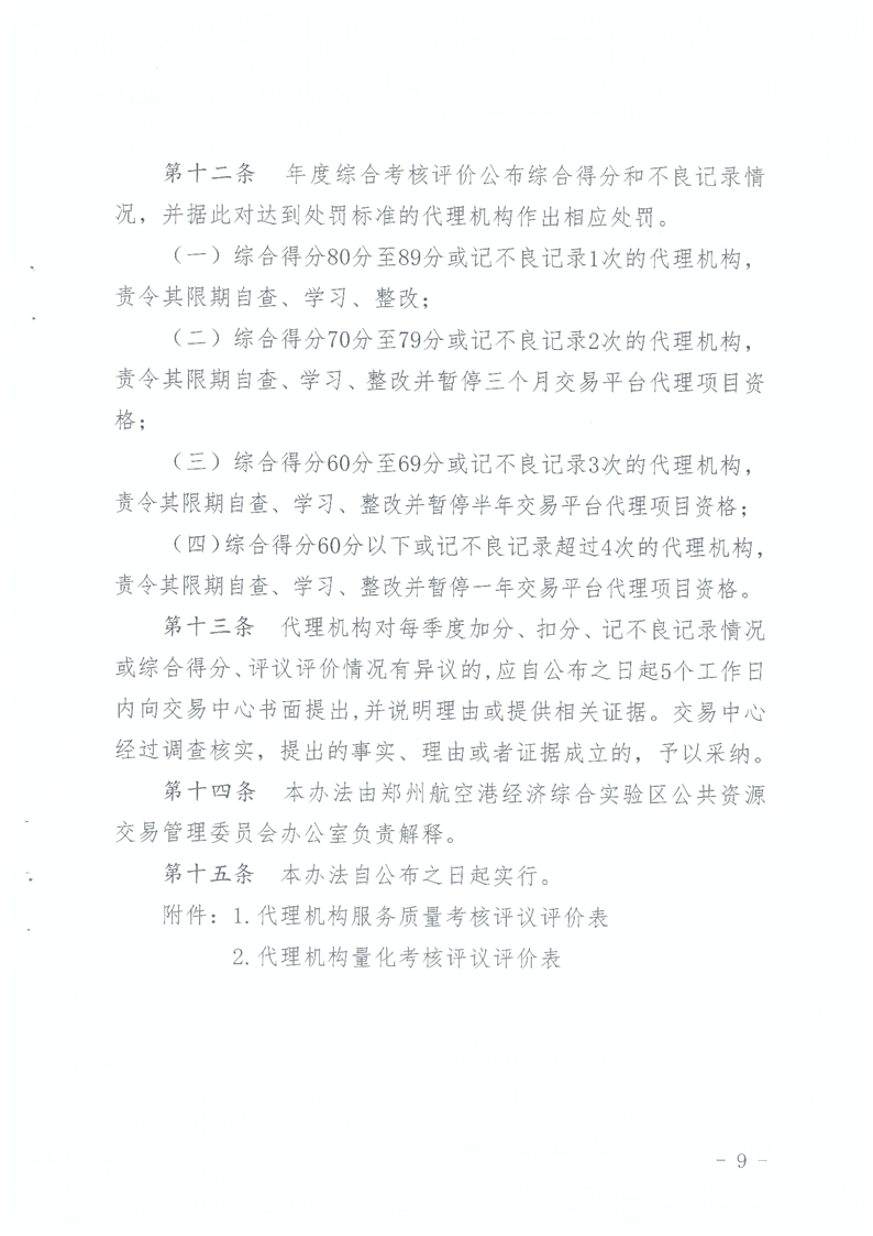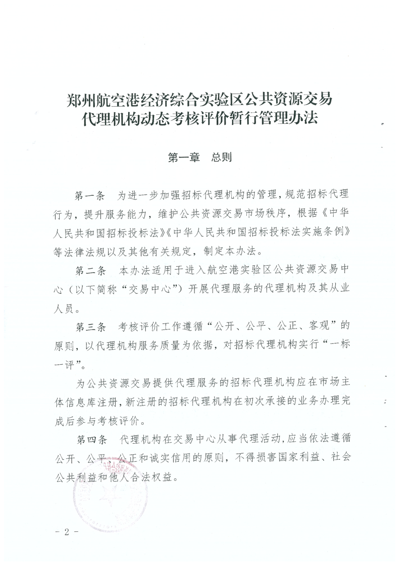 鄭州航空港經(jīng)濟綜合實驗區(qū)公共資源交易代理機構動態(tài)考核評價暫行管理辦法