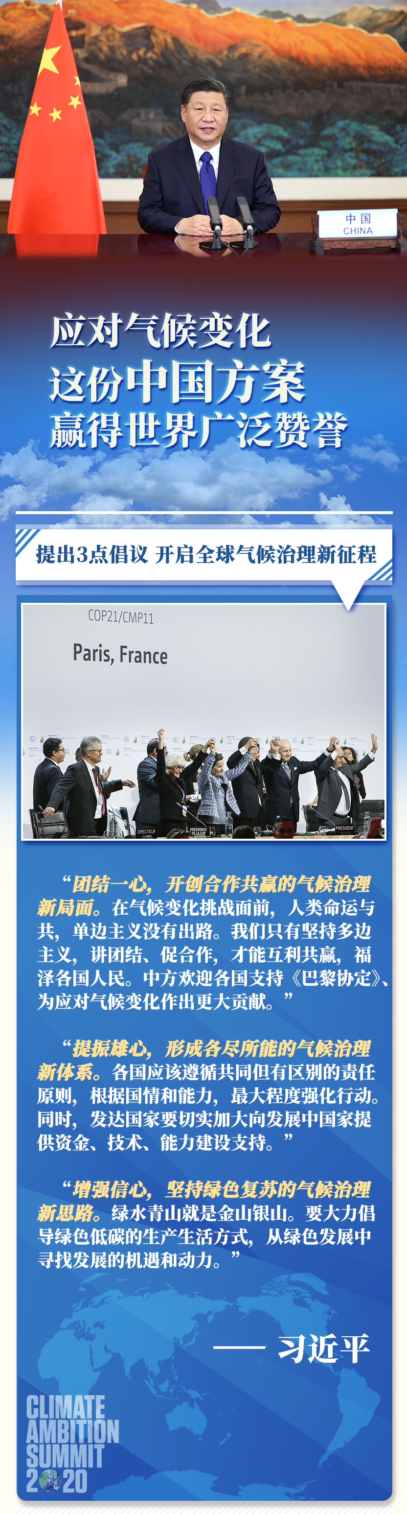 新華社北京12月13日電 12月12日,習(xí)近平主席在氣候雄心峰會(huì)上通過(guò)視頻發(fā)表題為《繼往開來(lái),開啟全球應(yīng)對(duì)氣候變化新征程》的重要講話,闡釋應(yīng)對(duì)氣候變化的中國(guó)主張,宣布中國(guó)國(guó)家自主貢獻(xiàn)最新舉措。