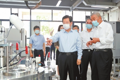 樓陽生走進河南省資源與材料工業(yè)技術(shù)研究院、納米光機電與生物醫(yī)學工程實驗室,參觀研究成果展,了解技術(shù)產(chǎn)品創(chuàng)新、科研團隊建設(shè)、研發(fā)平臺運行、成果轉(zhuǎn)化等情況。得知研究院準備以靶材料研究申請國家級創(chuàng)新平臺,樓陽生表示省委、省政府將全力支持,指出要把創(chuàng)新鏈、產(chǎn)業(yè)鏈融合起來,推進科研成果產(chǎn)業(yè)化。樓陽生強調(diào),要把現(xiàn)有的科研資源進一步整合重組,凝練一流課題,搭建一流平臺,多出一流成果。