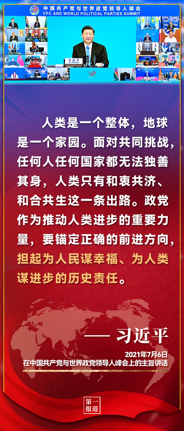 在中國(guó)共產(chǎn)黨成立100周年之際,習(xí)近平同來(lái)自160多個(gè)國(guó)家的500多個(gè)政黨和政治組織等領(lǐng)導(dǎo)人、逾萬(wàn)名政黨和各界代表共聚“云端”,探討“為人民謀幸福與政黨的責(zé)任”這個(gè)重大命題。