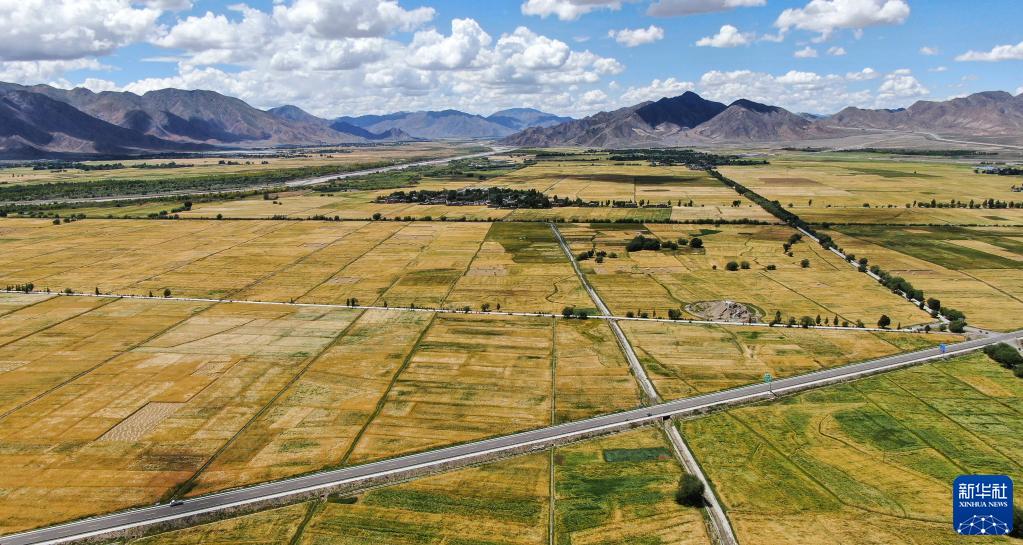 當下,在西藏河谷地帶成片的青稞地里,微風吹麥浪,一片金黃,如同農(nóng)民心中蕩起的幸福漣漪。