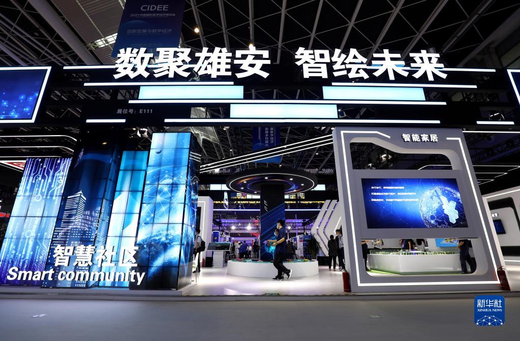 9月6日,參觀者在2021中國國際數(shù)字經(jīng)濟(jì)博覽會(huì)上參觀“數(shù)聚雄安 智繪未來”雄安展區(qū)。新華社發(fā)(梁子棟 攝)
