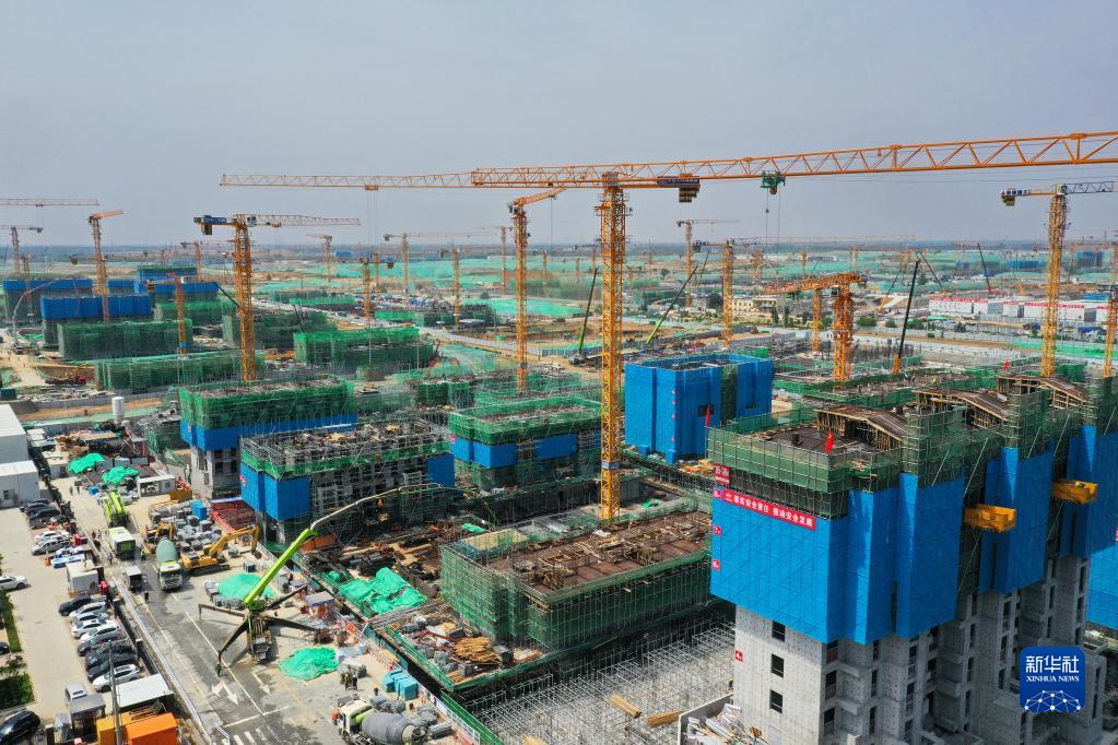 這是雄安新區(qū)容西片區(qū)建設(shè)現(xiàn)場(chǎng)(7月3日攝,無人機(jī)照片)。新華社記者 楊世堯 攝