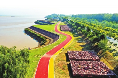 深秋時節(jié),航拍的開封黃河生態(tài)廊道一景。牛書培 攝