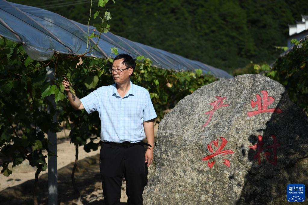 9月14日,李興國在安徽省安慶市岳西縣五河鎮(zhèn)河南村走訪一處農(nóng)業(yè)產(chǎn)業(yè)園。新華社記者 張端 攝