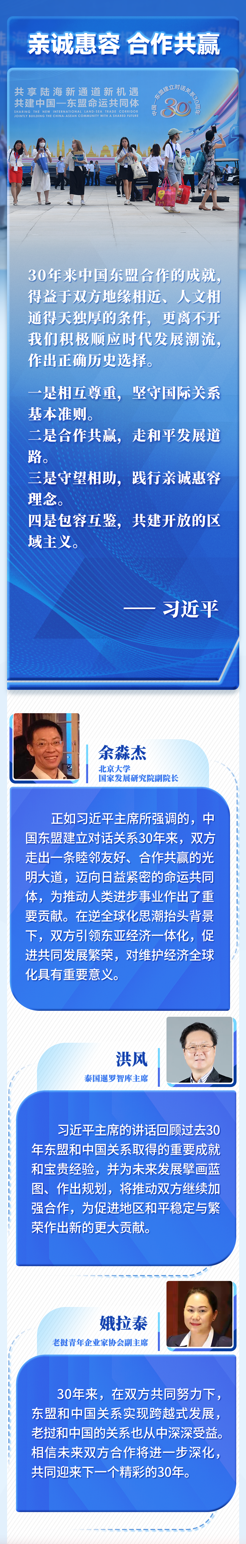 30年來(lái)中國(guó)東盟合作的成就,得益于雙方地緣相近、人文相通得天獨(dú)厚的條件,更離不開我們積極順應(yīng)時(shí)代發(fā)展潮流,作出正確歷史選擇。