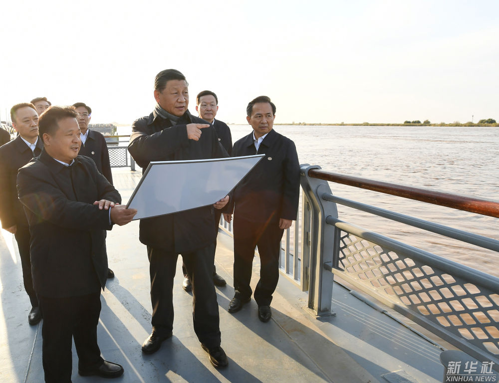 ↑2021年10月22日下午,習(xí)近平在山東省濟南市主持召開深入推動黃河流域生態(tài)保護和高質(zhì)量發(fā)展座談會并發(fā)表重要講話。這是座談會前,習(xí)近平20日下午在東營市黃河入??诳疾?。