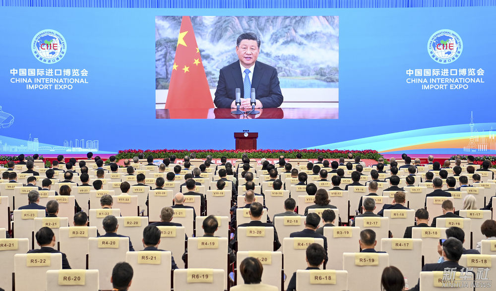 ↑2021年11月4日晚,習(xí)近平以視頻方式出席第四屆中國國際進口博覽會開幕式并發(fā)表題為《讓開放的春風(fēng)溫暖世界》的主旨演講。