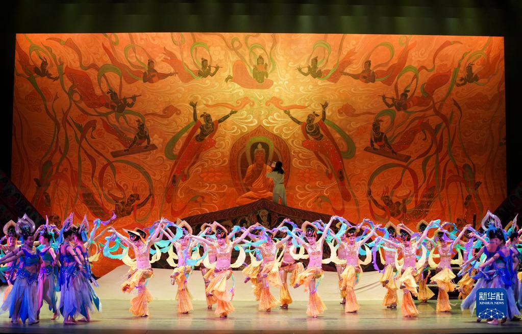 2020年1月9日,在美國紐約林肯劇院,演員在媒體預演上表演《大夢敦煌》片段。新華社記者 王迎 攝