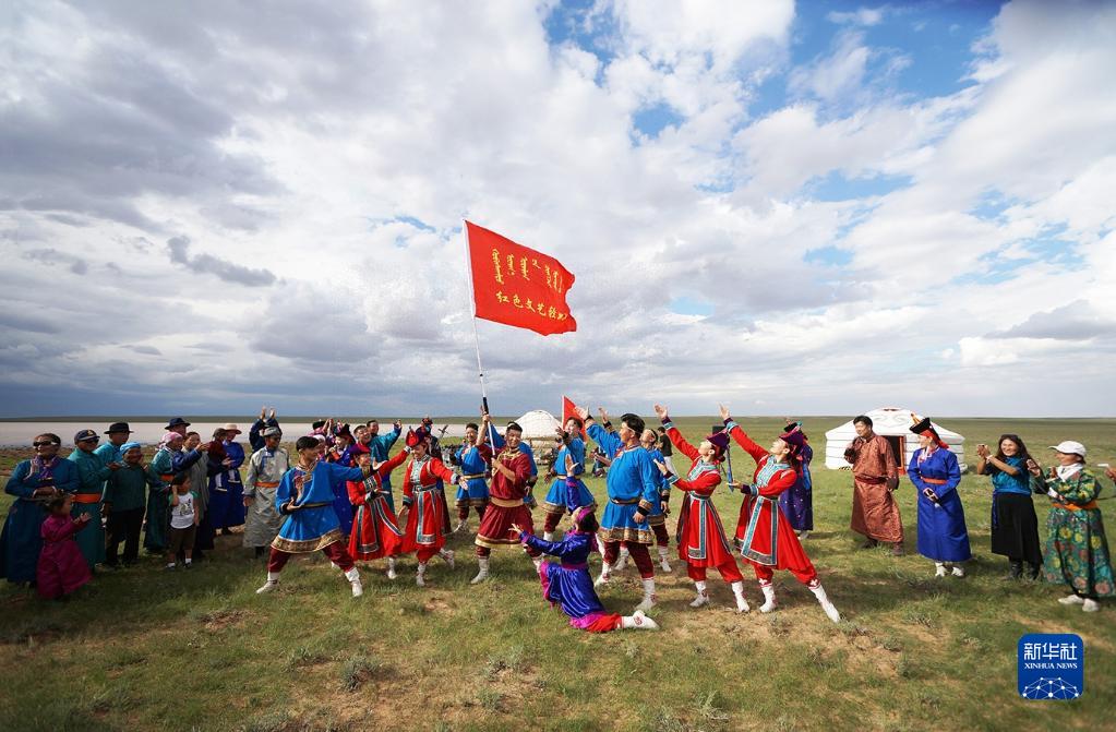 2018年8月22日,內蒙古蘇尼特右旗烏蘭牧騎隊員在牧區(qū)演出。新華社發(fā)(東哈達攝)
