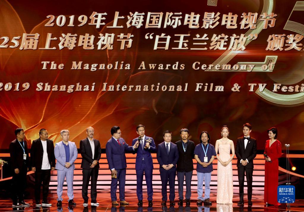 2019年6月14日,第25屆上海電視節(jié)落下帷幕,獲得“最佳中國電視劇”的《大江大河》主創(chuàng)上臺領獎。新華社記者 劉穎 攝