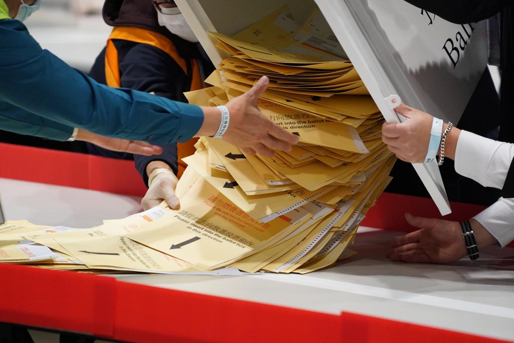 12月19日,香港順利舉行完善選舉制度后首次立法會(huì)選舉投票,工作人員點(diǎn)票現(xiàn)場。新華社記者 呂小煒 攝