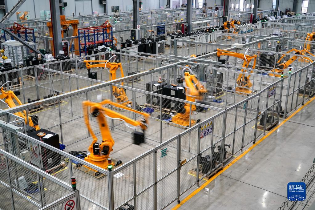 7月1日,在位于江蘇省南京市江寧區(qū)的南京埃斯頓自動化股份有限公司工業(yè)機(jī)器人生產(chǎn)車間,工業(yè)機(jī)器人在進(jìn)行跑合測試。新華社記者 李博 攝