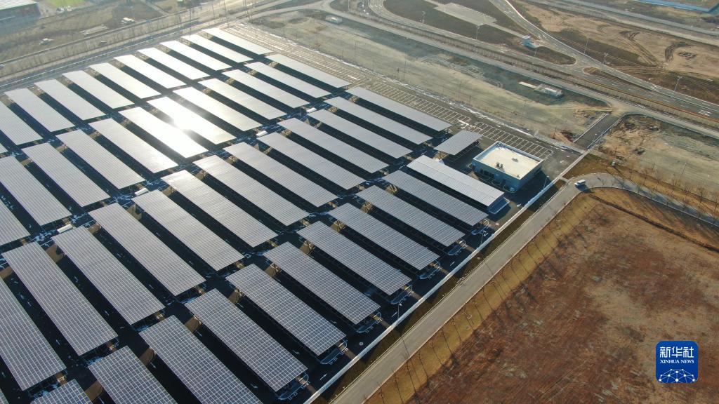 這是在遼寧省沈陽(yáng)市的華晨寶馬鐵西新工廠拍攝的光伏發(fā)電設(shè)施(12月28日攝,無(wú)人機(jī)照片)。新華社記者 楊青 攝