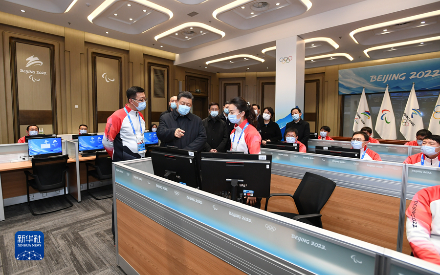 1月4日,中共中央總書記、國家主席、中央軍委主席習(xí)近平在北京考察2022年冬奧會(huì)、冬殘奧會(huì)籌辦備賽工作。這是4日下午,習(xí)近平在北京冬奧運(yùn)行指揮部調(diào)度中心考察。新華社記者 謝環(huán)馳 攝