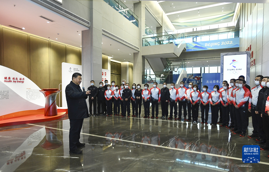 1月4日,中共中央總書記、國家主席、中央軍委主席習(xí)近平在北京考察2022年冬奧會(huì)、冬殘奧會(huì)籌辦備賽工作。這是4日下午,習(xí)近平在二七廠冰雪項(xiàng)目訓(xùn)練基地速滑館,向參訓(xùn)運(yùn)動(dòng)員、教練員表示慰問。新華社記者 謝環(huán)馳 攝