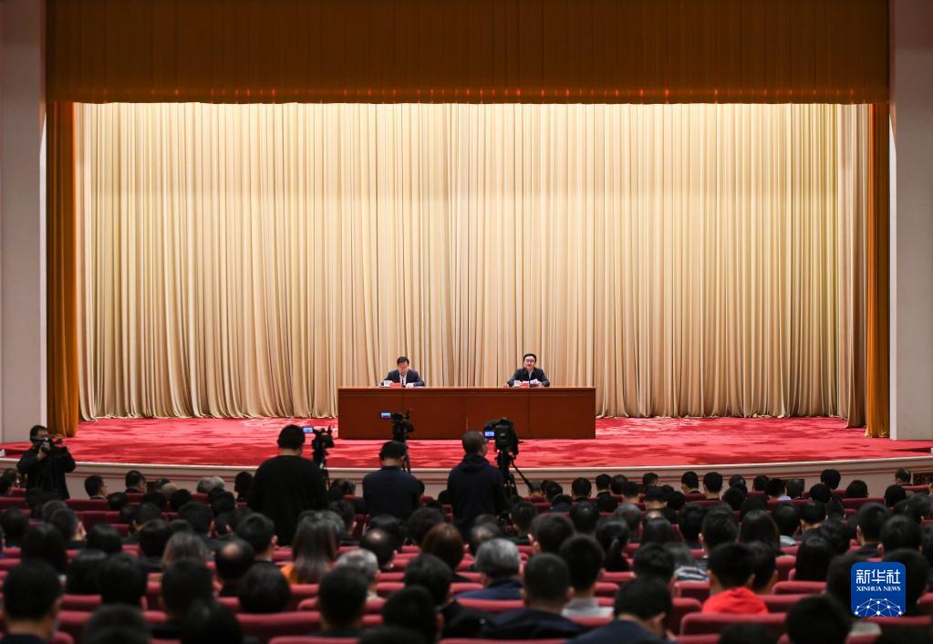2021年3月16日,黨史學(xué)習(xí)教育中央宣講團(tuán)首場報(bào)告會在北京舉行。這是中央宣講團(tuán)成員、中央黨史和文獻(xiàn)研究院院長曲青山(右)在報(bào)告會上作宣講報(bào)告。新華社記者 陳曄華 攝