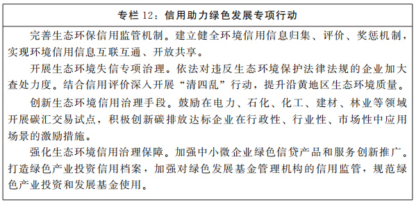 加強生態(tài)環(huán)境領域信用建設,開展生態(tài)環(huán)境失信專項治理,創(chuàng)新生態(tài)環(huán)境失信治理措施。強化沿黃生態(tài)、淮河生態(tài)、大別山等生態(tài)環(huán)境圈信用治理保障,結合公共信用評價和行業(yè)信用評價,制定沿黃、淮河、大別山等地區(qū)產業(yè)準入負面清單,推動高耗水、高污染、高耗能產業(yè)布局優(yōu)化和結構調整。
