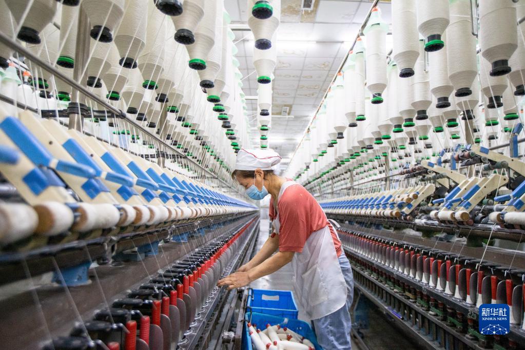 2月28日,工人在江蘇省海安市南莫鎮(zhèn)一家紡織公司生產(chǎn)車(chē)間內(nèi)忙碌。新華社發(fā)(翟慧勇 攝)