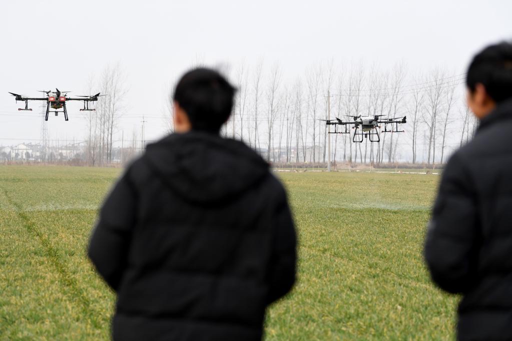 2月11日,亳州市譙城區(qū)趙橋鄉(xiāng)“無人農(nóng)場”無人機(jī)在噴灑除草劑。新華社記者劉軍喜攝