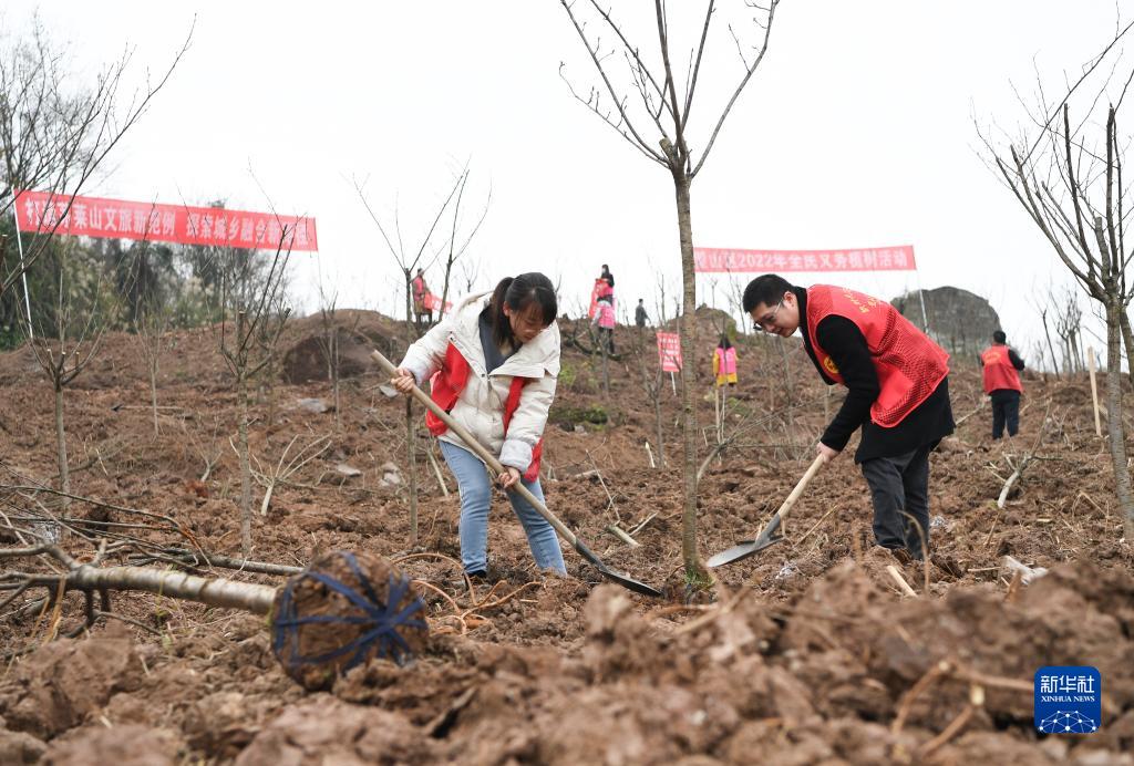 3月1日,在重慶市璧山區(qū),參加義務(wù)植樹活動的志愿者在植樹。新華社記者 王全超 攝