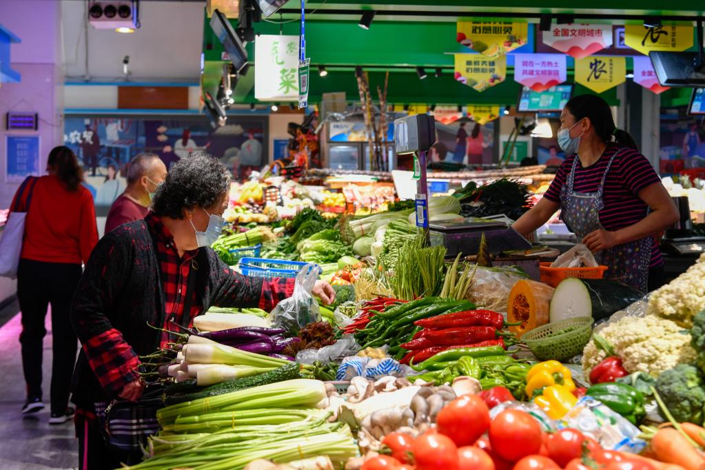3月30日,居民在深圳市福田區(qū)華榮凈菜市場里買菜。新華社發(fā)(儲焱 攝)