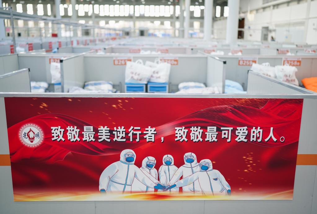4月3日拍攝的位于上海崇明區(qū)花博園的復(fù)興館方艙醫(yī)院。新華社記者 丁汀 攝