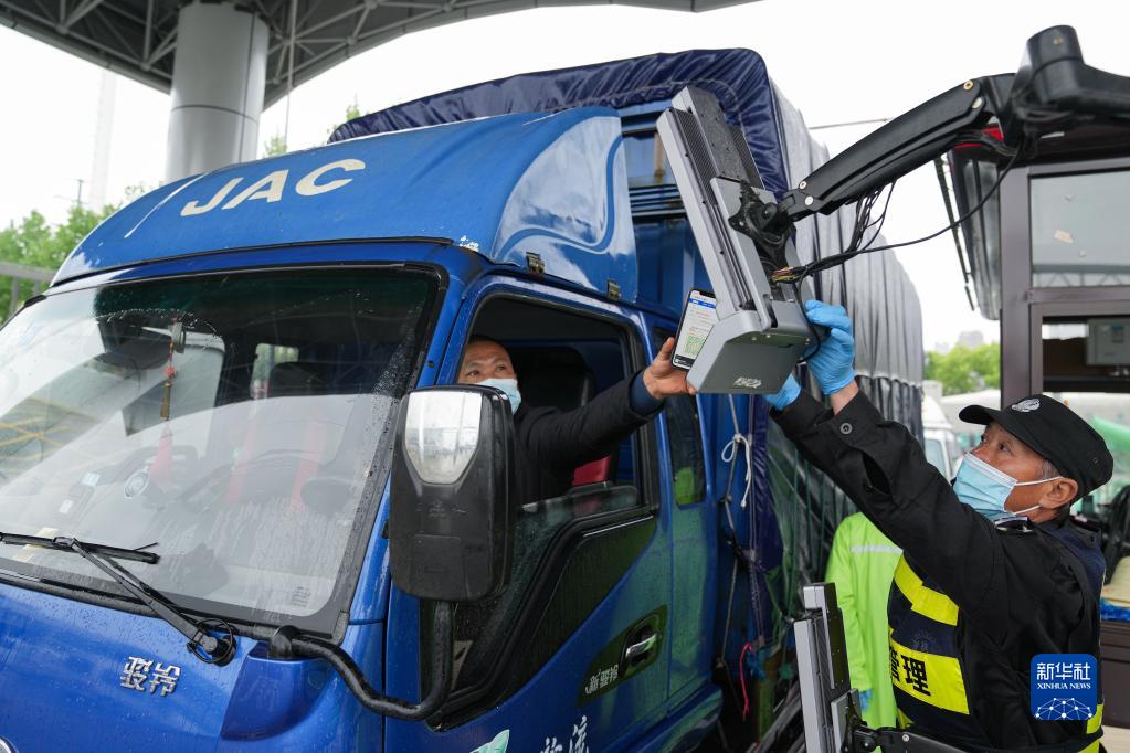 4月13日,在合肥百大周谷堆大興農(nóng)產(chǎn)品物流園,司機(jī)在智能化門禁系統(tǒng)上掃碼進(jìn)入。該園建立集測(cè)溫、核驗(yàn)安康碼、數(shù)據(jù)收集等功能的智能化門禁系統(tǒng),進(jìn)場(chǎng)駕乘人員不用下車即可快速核驗(yàn),實(shí)現(xiàn)防疫測(cè)溫智能化、人車追溯數(shù)據(jù)化。新華社記者 杜宇 攝
