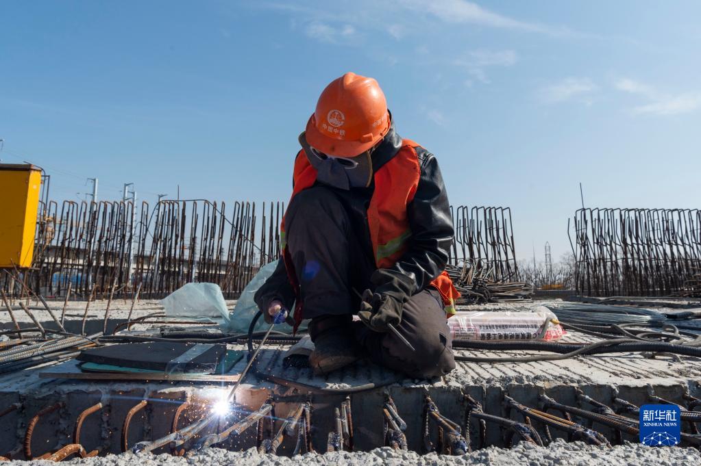 4月3日,在哈爾濱市道外區(qū),工人在中鐵一局北門街高架工程施工現(xiàn)場(chǎng)作業(yè)。新華社記者 謝劍飛 攝