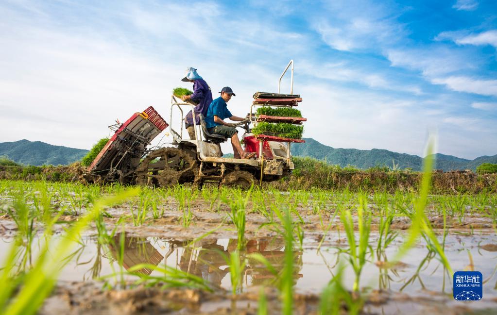4月12日,江西省九江市都昌縣蔡嶺鎮(zhèn)楊灣村農(nóng)民駕駛農(nóng)機(jī)在田間勞作。新華社發(fā)(傅建斌攝)