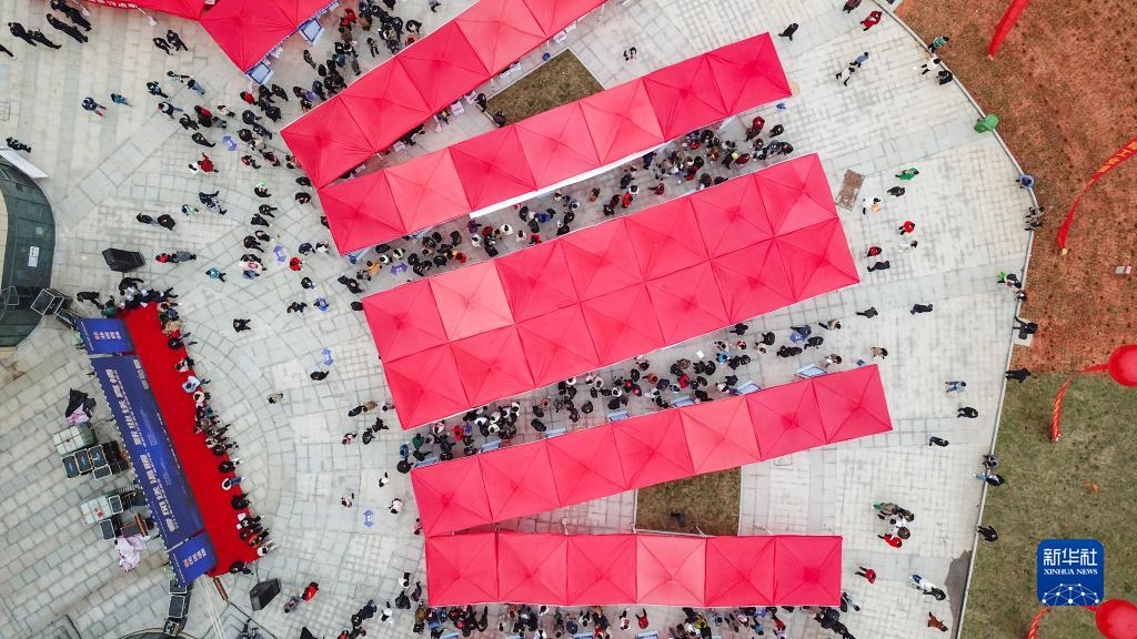 這是3月10日在長沙望城經(jīng)開區(qū)銅官工業(yè)園拍攝的招聘活動現(xiàn)場(無人機照片)。新華社記者 陳澤國 攝