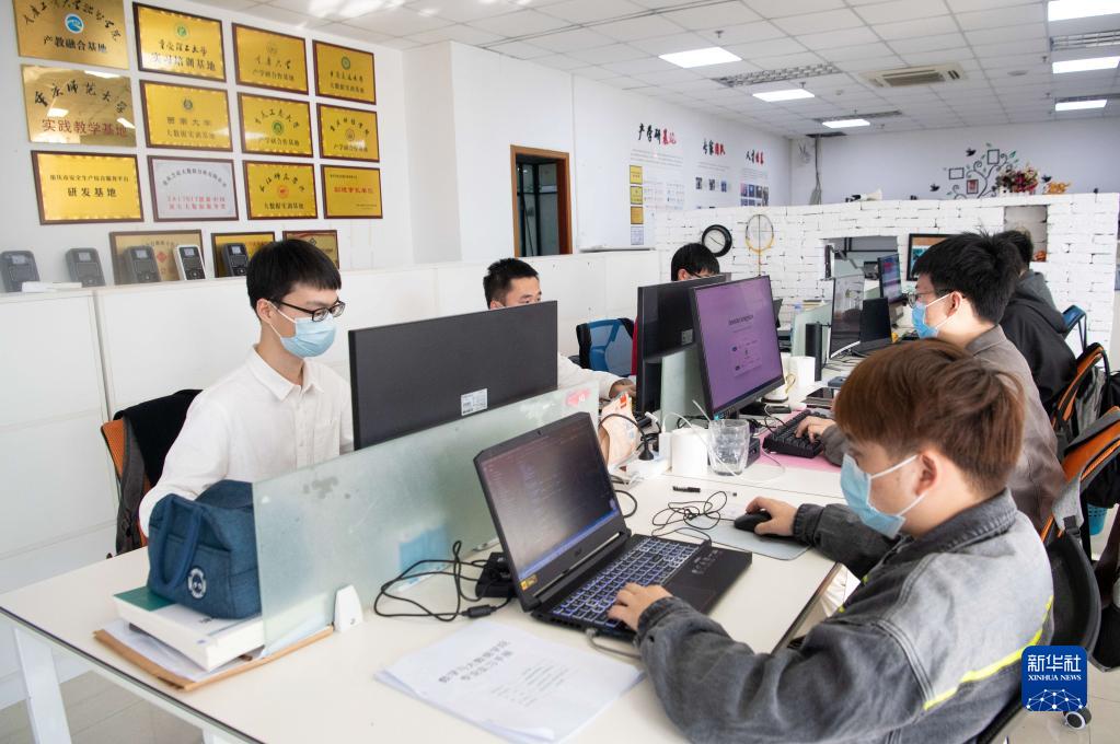 在位于重慶大渡口的“大眾創(chuàng)業(yè)萬眾創(chuàng)新示范基地”內(nèi),大學畢業(yè)生和青年人才在一家名為重慶芝諾的大數(shù)據(jù)公司內(nèi)工作(3月28日攝)。新華社記者 唐奕 攝