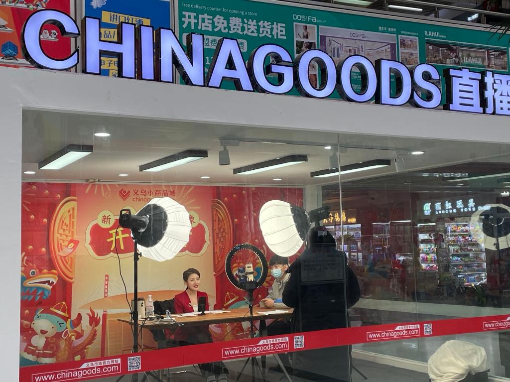 Chinagoods直播間里,主播向采購商直播推介商品。 新華社記者屈凌燕攝
