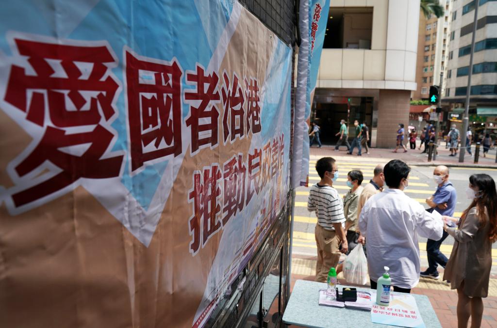 2021年9月21日,香港街頭舉辦“落實(shí)愛(ài)國(guó)者治港 推動(dòng)良政善治”街站宣傳活動(dòng)。 新華社記者 李鋼 攝