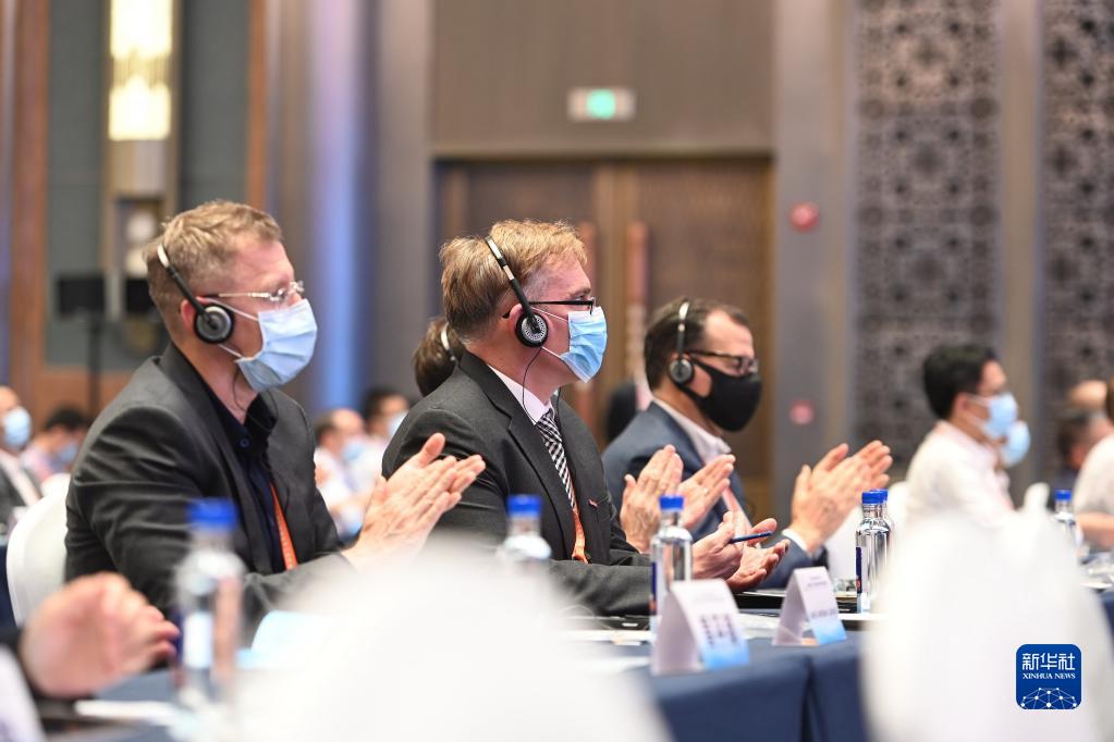 2022年5月23日,嘉賓在福建廈門(mén)出席金磚國(guó)家工業(yè)互聯(lián)網(wǎng)與數(shù)字制造發(fā)展論壇開(kāi)幕式。新華社記者 林善傳 攝