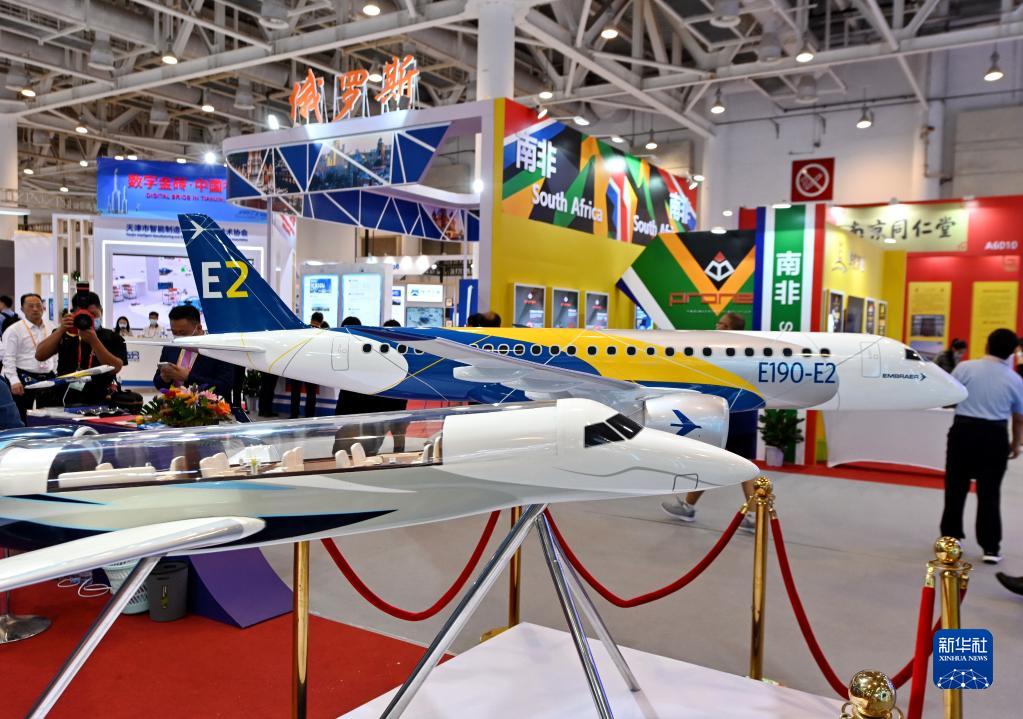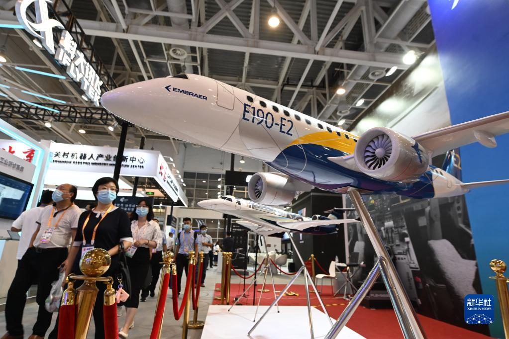 2021年9月8日,參觀者在廈門(mén)開(kāi)幕的金磚國(guó)家新工業(yè)革命展上拍攝飛機(jī)模型。新華社記者 林善傳 攝