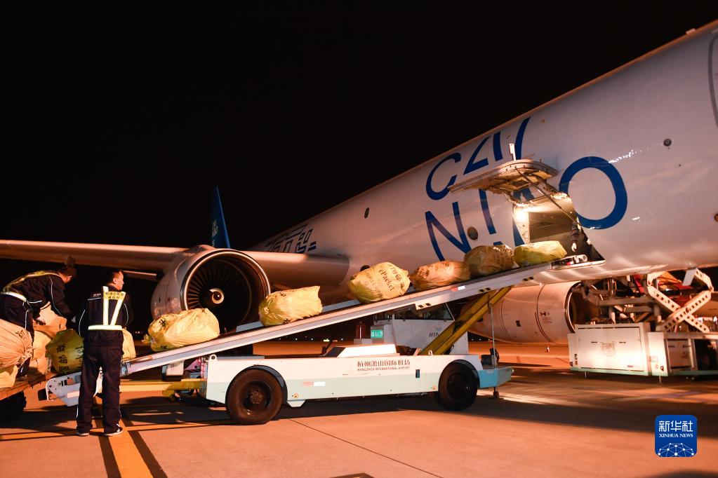 2019年10月30日凌晨,浙江杭州飛往俄羅斯首都莫斯科的首條直達(dá)電商貨運(yùn)航線“菜鳥(niǎo)號(hào)”從蕭山國(guó)際機(jī)場(chǎng)首航。新華社記者 黃宗治 攝