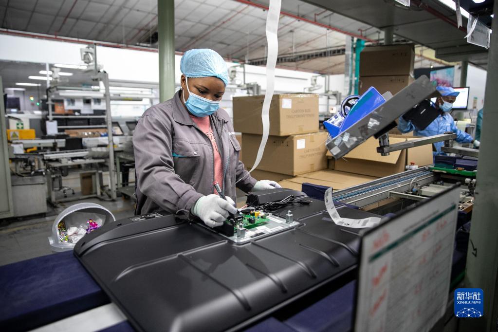 2022年6月1日,當(dāng)?shù)貑T工在南非開(kāi)普敦海信南非工業(yè)園的電視機(jī)生產(chǎn)線上工作。新華社記者 呂天然 攝