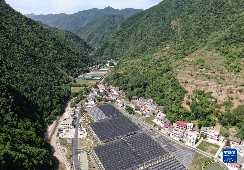 5月30日拍攝的陜西省商洛市柞水縣金米村的木耳大棚(無(wú)人機(jī)照片)。 新華社記者 李一博 攝