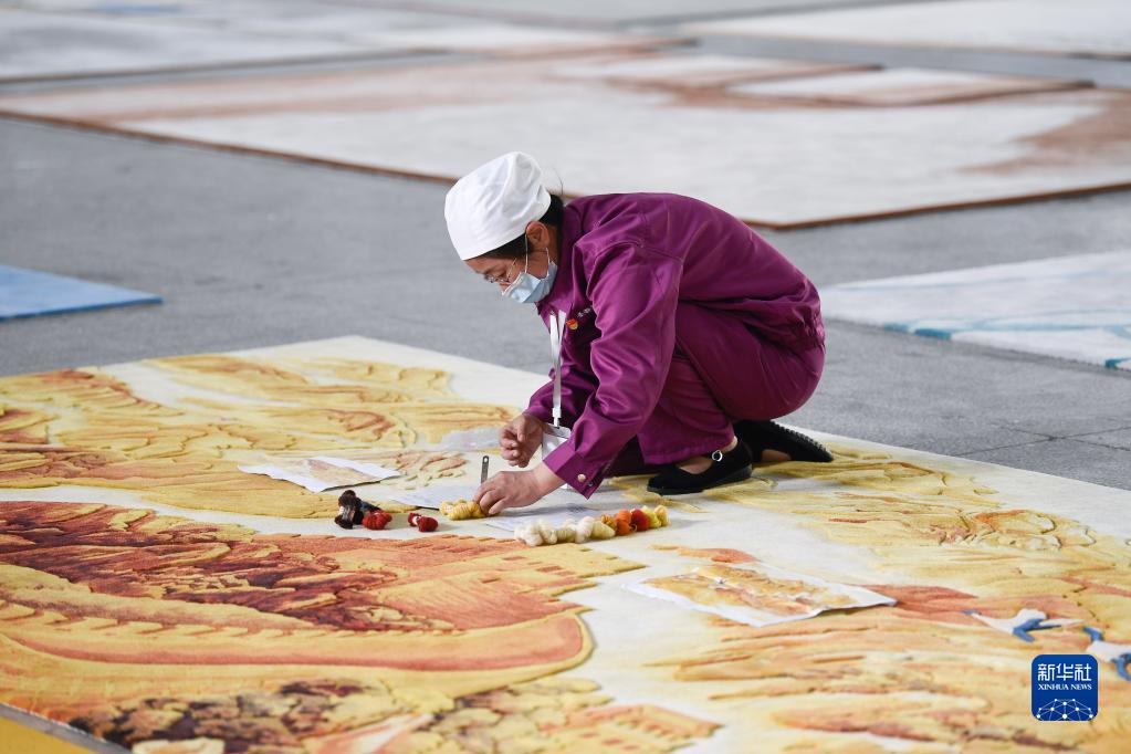 2021年6月7日,在青海圣源地毯集團(tuán)有限公司生產(chǎn)車(chē)間內(nèi),工人在制作藏毯。新華社記者 張龍 攝