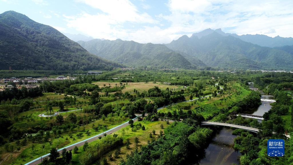 這是2019年7月26日拍攝的陜西省西安市長(zhǎng)安區(qū)秦嶺違建別墅拆除后建設(shè)的秦嶺和諧森林公園(無(wú)人機(jī)照片)。新華社記者 劉瀟 攝