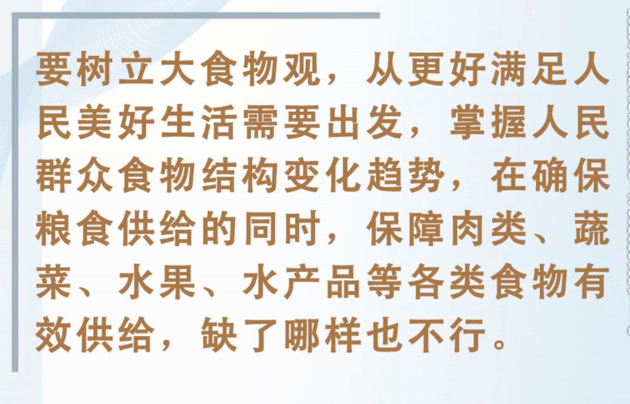今年全國(guó)兩會(huì)上,習(xí)近平總書記提出“要樹(shù)立大食物觀”。
