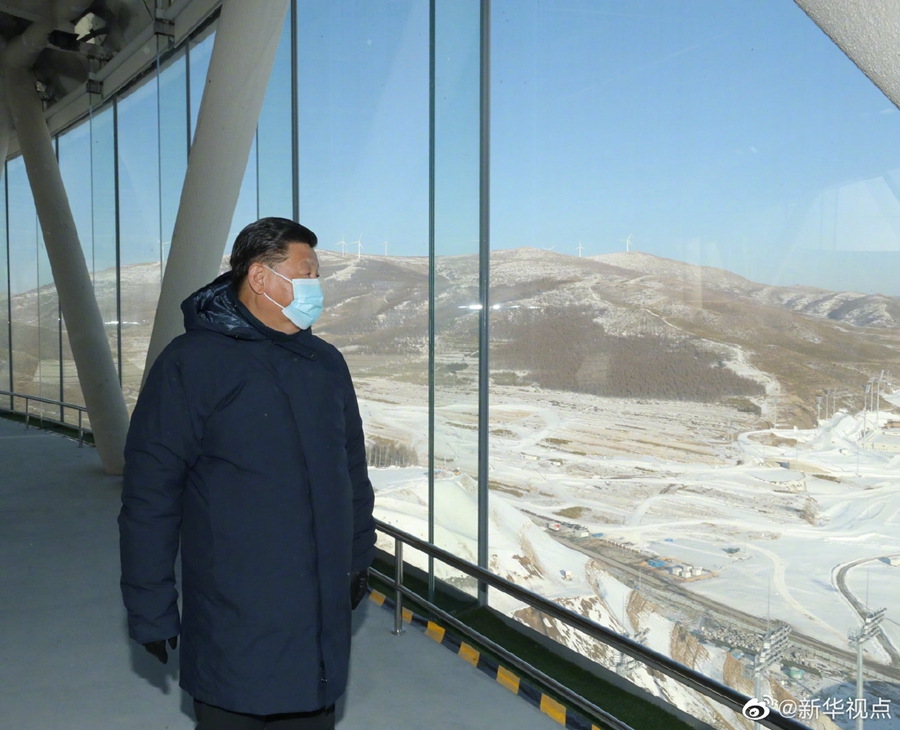 19日,習近平總書記乘火車沿京張高鐵抵達河北省張家口市,先后考察京張高鐵太子城站、國家跳臺滑雪中心、國家冬季兩項中心,看望慰問運動員、教練員和張家口賽區(qū)運行保障團隊、建設(shè)者代表。(文字記者:張曉松、朱基釵 攝影記者:鞠鵬、王曄、岳月偉)