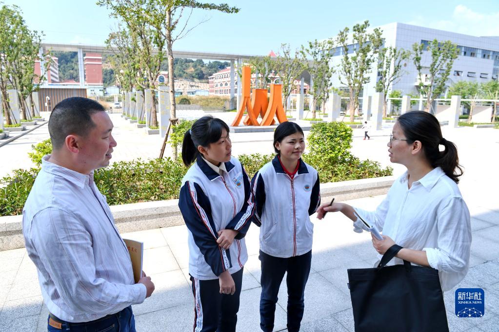 2019年10月24日,福建省福州市閩侯縣委巡察二組工作人員(右一)在閩侯縣職業(yè)中專學(xué)校了解中職補(bǔ)助資金發(fā)放情況。新華社記者 林善傳 攝