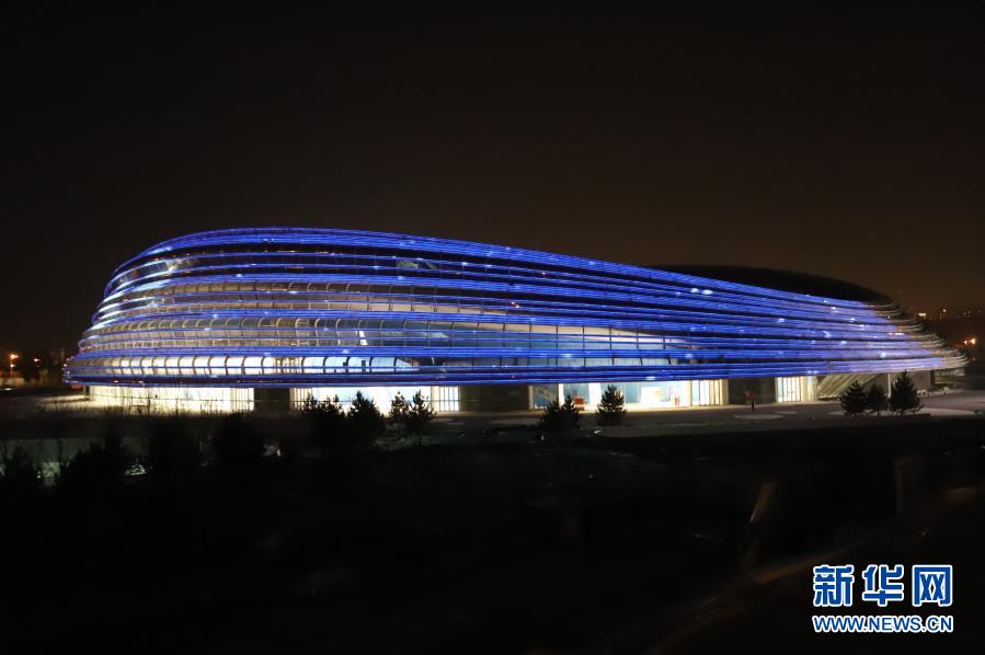這是2020年12月15日,國家速滑館進(jìn)行場館外立面泛光照明調(diào)試。新華社記者 張驍 攝