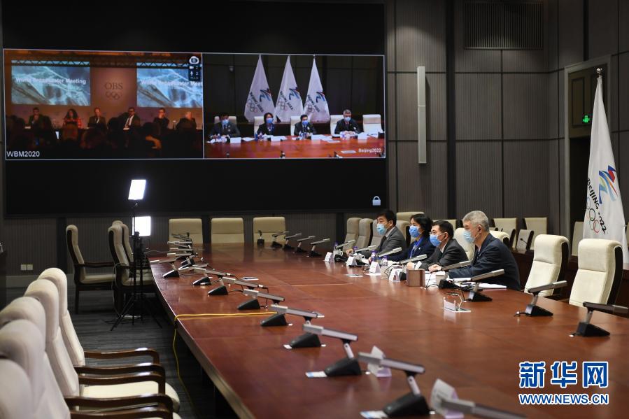 這是2020年2月24日,北京冬奧會(huì)和冬殘奧會(huì)2020年世界轉(zhuǎn)播商大會(huì)北京分會(huì)場通過視頻連線方式參會(huì)。新華社記者 鞠煥宗 攝