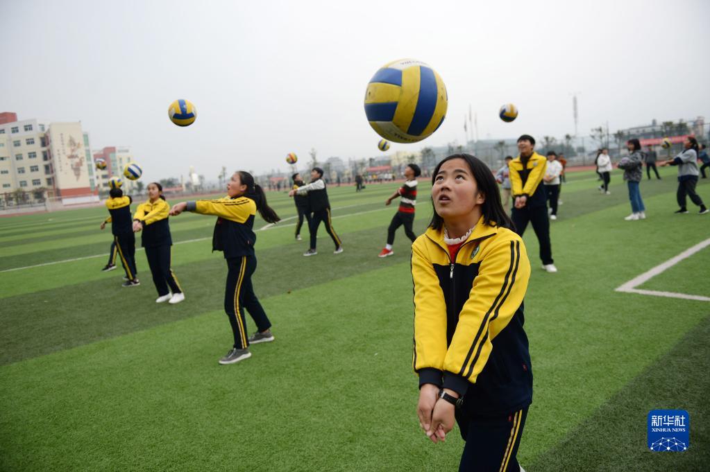 貴州省黔東南苗族侗族自治州榕江縣第四中學學生在上體育課(2018年12月13日攝)。新華社記者 楊楹 攝