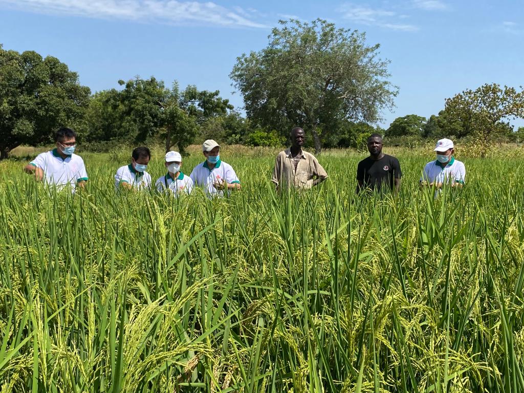 這是2021年7月13日,中國(guó)專家組成員在布基納法索中西大區(qū)水稻示范區(qū)查看苗情。新華社發(fā)(中國(guó)農(nóng)業(yè)組供圖)